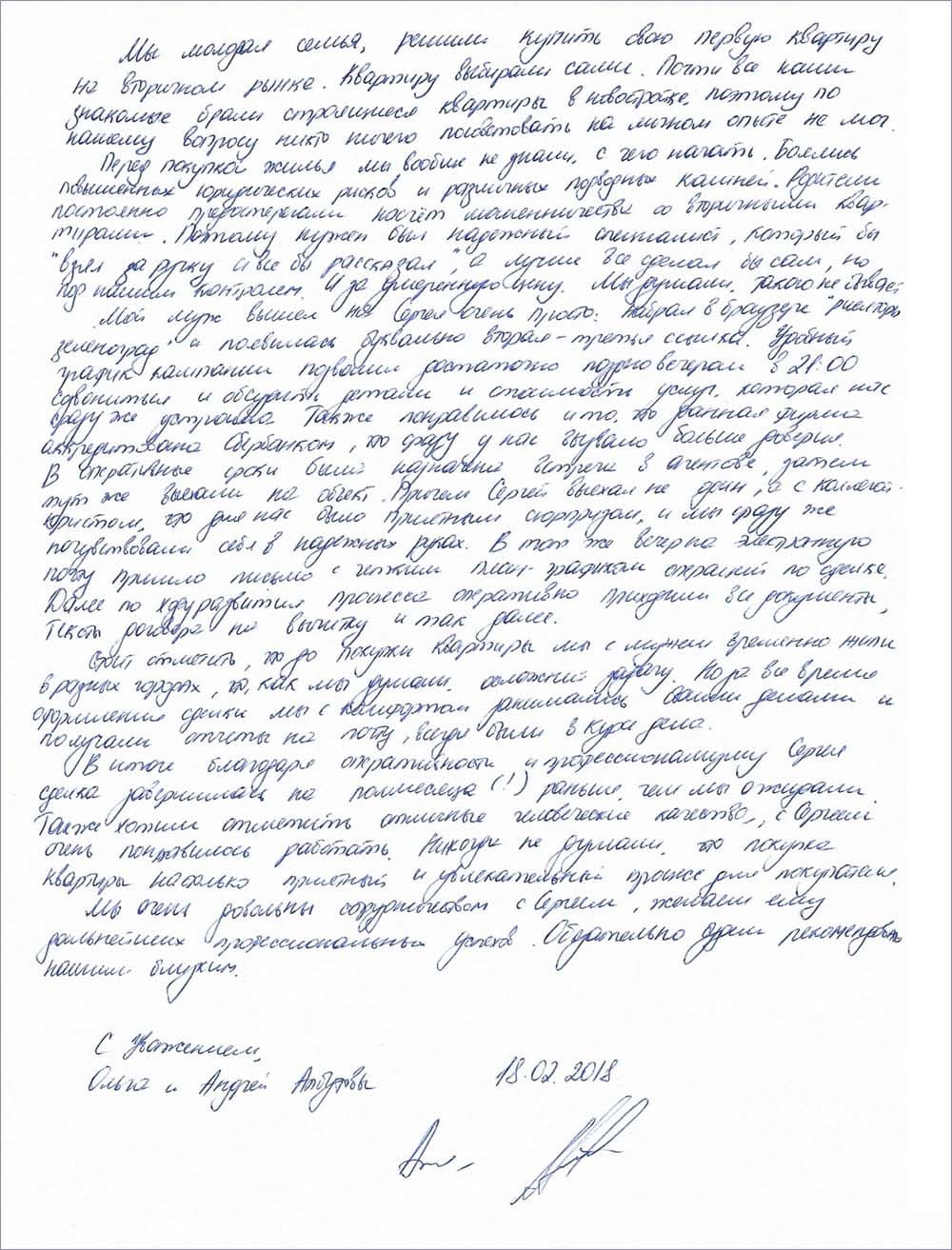 С Уважением, Ольга и Андрей , Зеленоград. 18.02.2018