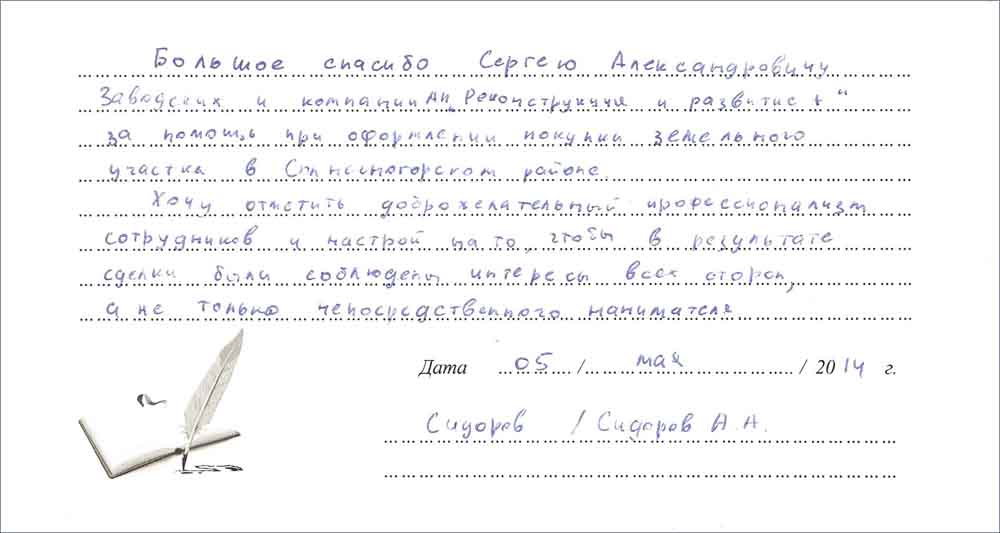 Отзыв Сергею Заводских от Александра С. о покупке участка