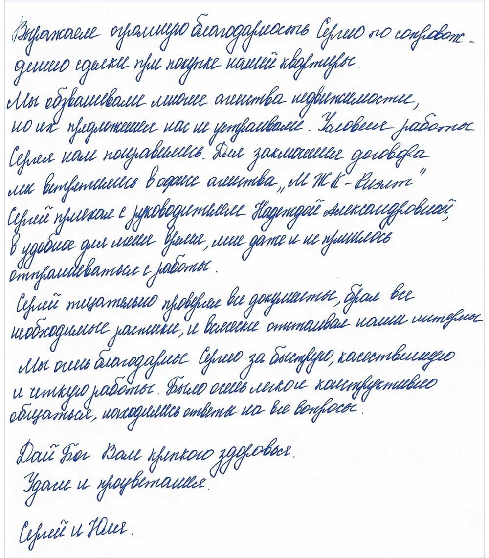 Отзыв Сергею Заводских от Сергея и Юли о покупке квартиры
