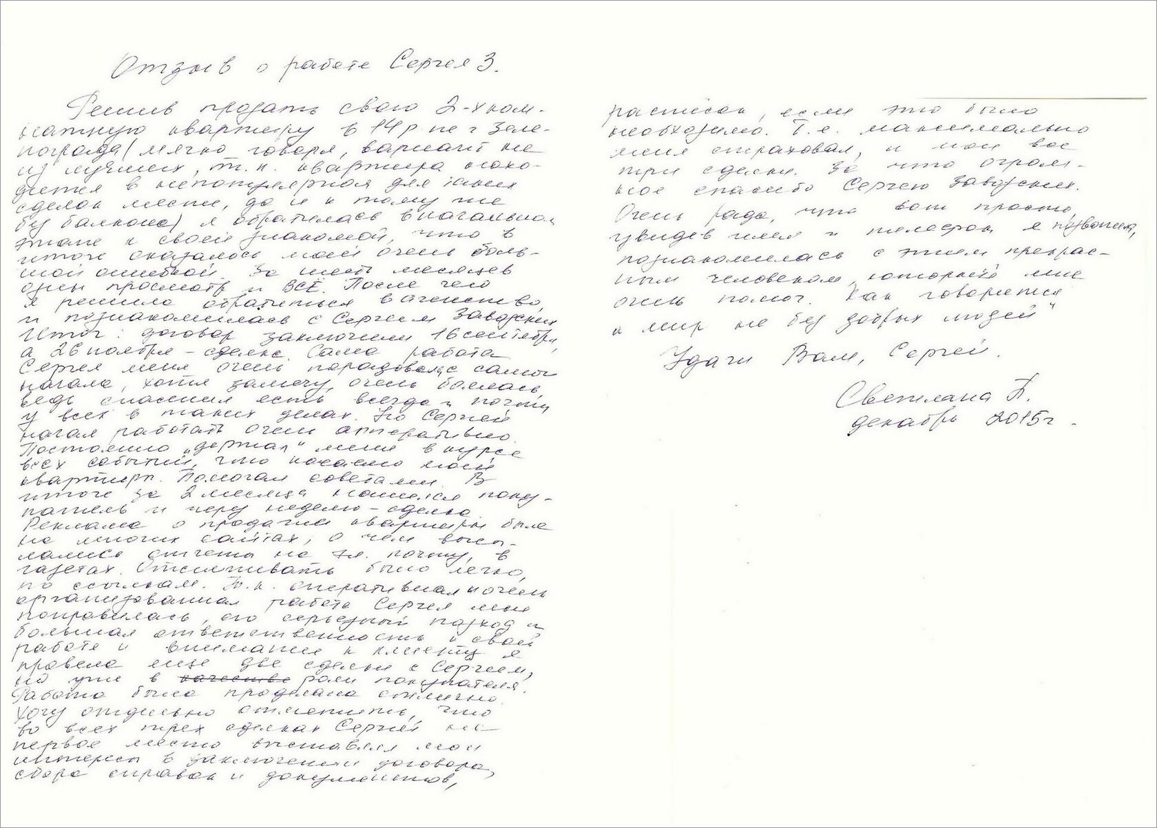 Отзыв Сергею Заводских о продаже квартиры в Зеленограде